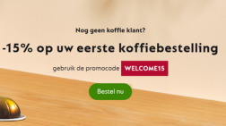 Met de kortingscode WELCOME15 ontvang je 15% korting op je eerste koffiebestelling bij Nespresso!