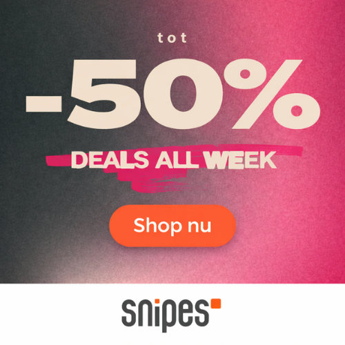 Deals all Week bij SNIPES! Dit is het perfecte moment om te besparen. Je profiteert namelijk alleen deze week van deals met kortingen tot wel 50%! Schoenen, kleding, accessoires; alles shop je nu met extra korting. Vind jouw nieuwe favoriete items en profiteert direct voor het te laat is.
