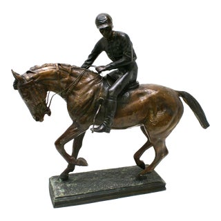 Large Bronze Jockey Rider on Race Horse Sculpture, 20th...