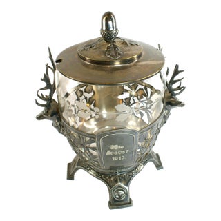 Antique Art Nouveau German Silver Stag Handled Etched...