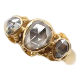 Early 20th Century Three Stone Rose Cut Diamond Ring, Size 6