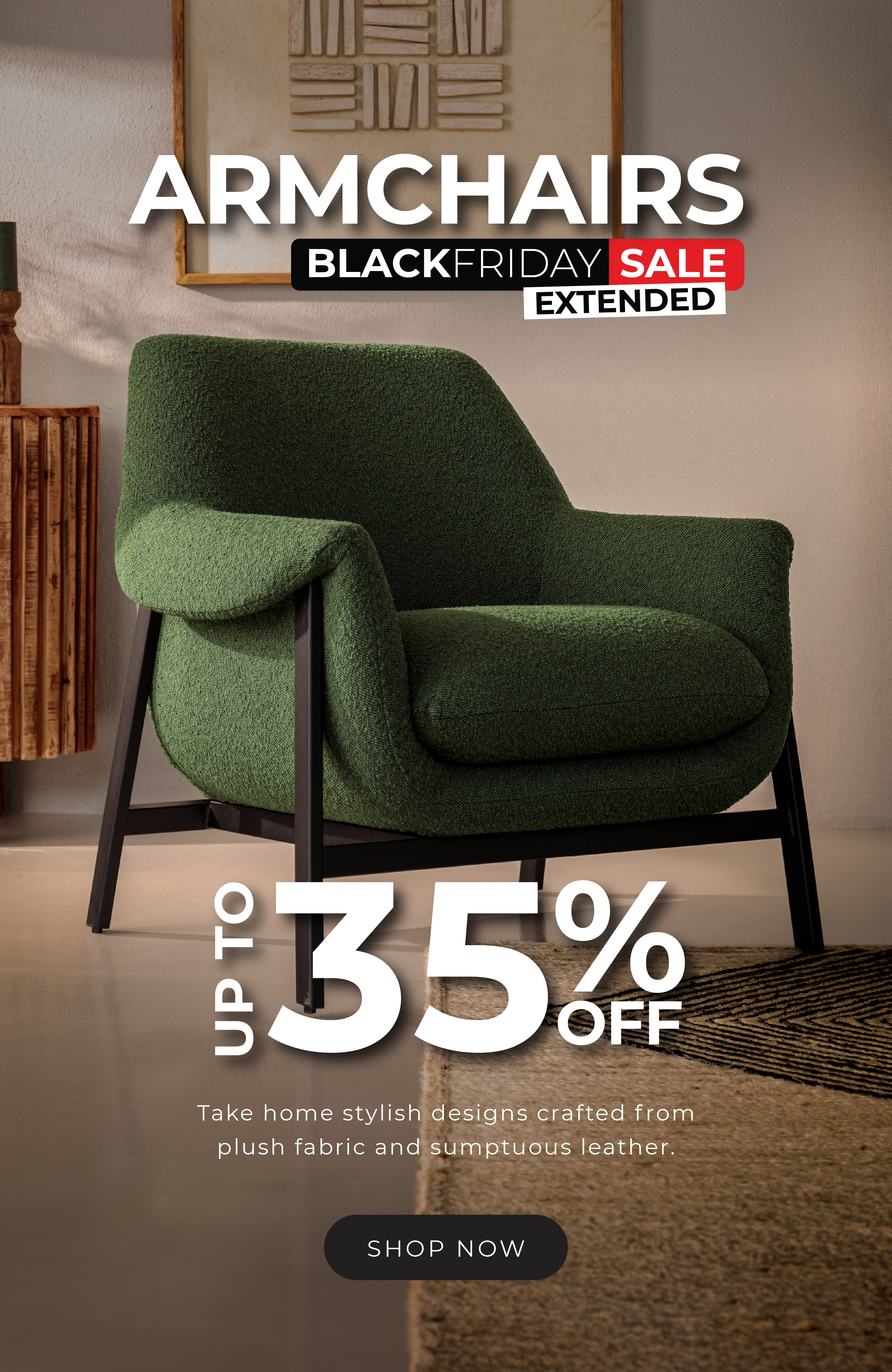 Up to 35% off a stylish armchair selection | Cielo Black Friday Extended