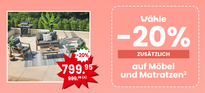 🐥 Frohe Ostern: -20 % auf Möbel, Gartenmöbel und Matratzen!