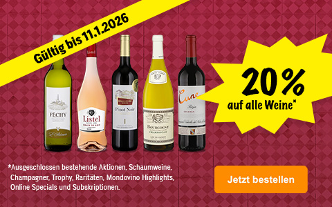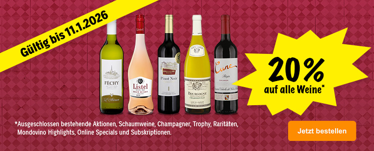 Bis am Sonntag, 11. Januar profitieren Sie von 20% auf alle Weine*.