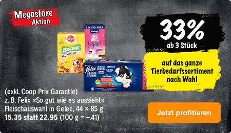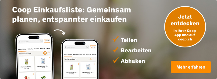 Preise und Erhältlichkeit von Produkten auf coop.ch und in den Coop Verkaufsstellen können (in Einzelfällen) voneinander abweichen. | |