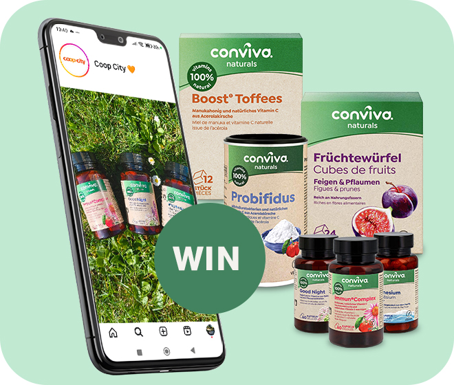 Gewinnen Sie eines von drei Herbst-Bundles – vollgepackt mit allen conviva-naturals-Produkten. So nehmen Sie teil: Einfach @coopcity auf Instagram folgen, den Beitrag bis 4.9. 23.59 Uhr liken und schon sind Sie im Lostopf. Viel Glück! |