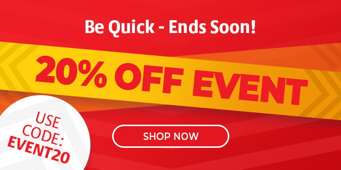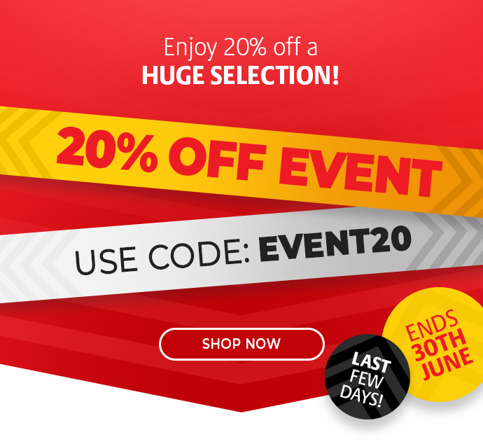 | Terms & Conditions *Enjoy 20% OFF a huge selection with code: EVENT20 at the checkout. Applicable on labeled offers. Only one offer code may be used at any one time. Limited time only. All offers are subject to availability.