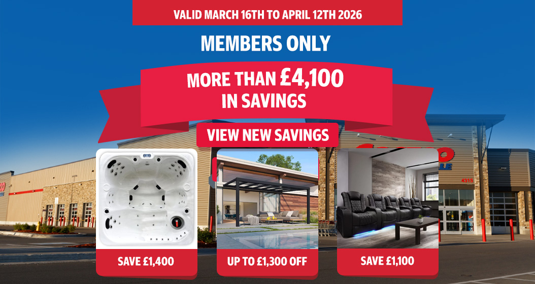 please click here. Please add news@e.costco.co.uk to your address book/safe senders list to make sure you always receive our emails. Double £509.99 delivered King £547.49 delivered After 25% OFF Silentnight Geltex Ultraflex 3000 Mirapocket Mattress, 2 Firmness Ratings • In 4 Sizes Offer ends 12/04/2026 Double £239.99 delivered King £262.49 delivered After 25% OFF Silentnight 1400 Pocket Ortho Mattress • In 4 Sizes Offer ends 12/04/2026 £1,399.98 delivered After £400 OFF Yardistry 14ft x 12ft (4.3 x 3.7m) Wooden Pavilion with Aluminium Roof Offer ends 12/04/2026 £899.98 delivered After £300 OFF Norfolk Thornbury 4 Piece Seating Set Offer ends 12/04/2026 £3,599.99 delivered After £1,400 OFF Hot Tub Master Cloud Stream 40-Jet 6 Person Hot Tub - Delivered and Installed Offer ends 12/04/2026 £499.98 delivered After £130 OFF Discount applied at checkout Backyard Discovery Echo Heights Playhouse (3-10 Years) Offer ends 12/04/2026 £7,199.99 delivered After £1,800 OFF Fresh Solar 10.24kWh Fox ESS Evo Battery Solar PV System [6 Panels] - Fully Installed Offer ends 12/04/2026 £999.98 delivered After £200 OFF Milan 609 Composite Front Door with Installation up to 1m • In Various Colours Offer ends 12/04/2026 £699.99 delivered After £250 OFF Discount applied at checkout TCL 85P8K-UK 85 Inch QLED Smart TV Offer ends 12/04/2026 £999.99 delivered After £300 OFF Discount applied at checkout Hisense 65U8QTUK 65 Inch Mini LED HD Smart TV Offer ends 12/04/2026 £249.99 delivered After £130 OFF Discount applied at checkout Hisense 43E78QTUK PRO 43 Inch QLED HD Smart TV Offer ends 12/04/2026 £159.99 delivered After £40 OFF AVF Hoxton TV Stand for TV's up to 70" • In 4 colours Offer ends 12/04/2026 £219.99 delivered After £60 OFF Discount applied at checkout Dyson Ball™ Animal Upright Vacuum Cleaner UP32 Offer ends 12/04/2026 £849.98 delivered After £350 OFF Lenovo LOQ, Intel Core i7, 16GB RAM, 1TB SSD, NVIDIA GeForce RTX 5060, 15.6 Inch Gaming Laptop, 83JE000EUK Offer ends 12/04/2026 Also Available in Warehouse (Price may vary) £449.98 delivered After £150 OFF Discount applied at checkout Haier HSR3918ENPG, Side by Side Fridge Freezer, E Rated in Silver Offer ends 12/04/2026 £379.99 delivered After £120 OFF Discount applied at checkout Samsung Series 5 WW11DG5B25ABEU 11kg, 1400rpm, Washing Machine A Rated in Black Offer ends 12/04/2026 £379.98 delivered After £100 OFF Discount applied at checkout Hisense RB395N4BCE Fridge Freezer, E Rated in Stainless Steel Offer ends 12/04/2026 £799.99 delivered After £200 OFF Coddle Aria Grey Fabric Convertible Sofa Bed with Chaise Offer ends 12/04/2026 £249.99 delivered After £150 OFF True Innovations Hayden Beige Fabric Manual Recliner Chair Offer ends 12/04/2026 £74.99 delivered After £25 OFF Discount applied at checkout Tefal Easy Fry Essential Dual Air Fryer 8.3L, EY901HG Offer ends 12/04/2026 UP TO £60 OFF Double £159.99 delivered King £199.99 delivered Dormeo Octasmart Deluxe Mattress Topper Offer ends 12/04/2026 UP TO £65 OFF Double £214.98 delivered King £239.98 delivered Simba Hybrid® 3-in-1 Duvet • In 4 Sizes Offer ends 12/04/2026 £32.98 delivered Buy 2, get £13 OFF (£6.50 per pillow) Panda Memory Foam Pillow with Bamboo Cover Offer ends 12/04/2026 £64.99 delivered After £15 OFF Naturally Sheepskins Long Wool Double Rug, 180 x 55 cm • In 6 Colours Offer ends 12/04/2026 £21.99 delivered After £6 OFF Sealy Deeply Full Pillow, 2 Pack Offer ends 12/04/2026 UP TO £100 OFF 240 x 320 cm £279.99 delivered 282 x 389 cm £399.99 delivered Rustic Textures Rugs • In 5 Designs • In 4 Sizes Offer ends 12/04/2026 10% OFF Shutters Factory Custom Made & Installed Composite Window Shutters £269.99 delivered After £130 OFF Discount applied at checkout Dyson AM09 Hot+Cool™ Jet Focus Fan Heater Offer ends 12/04/2026 £1,249.99 delivered After £350 OFF Hilka 24 Gauge Steel 11 Piece Cabinet Set Offer ends 12/04/2026 £549.98 delivered After £150 OFF Reolink 8MP (4K) UHD NVR PoE AI 16 x channel / 8 x Bullet camera Kit with 4TB HDD Offer ends 12/04/2026 £369.99 delivered After £130 OFF Discount applied at checkout Anker SOLIX C1000X Portable Power Station 1056Wh Offer ends 12/04/2026 £649.98 delivered After £250 OFF Discount applied at checkout Anker C1000X Portable Power Station 1056Wh & Expansion Battery Offer ends 12/04/2026 £1,199.98 delivered After £300 OFF Marcy MWM-8307LP 68kg Stack Deluxe Gym with Leg Press Offer ends 12/04/2026 £549.99 delivered After £250 OFF Marcy HIMT Cage & Utility Bench Offer ends 12/04/2026 £199.99 delivered After £50 OFF Marcy MWB-20100 Folding Compact Weight Bench Offer ends 12/04/2026 £2,499.99 delivered After £700 OFF At Home SPX® Reformer Package with Vertical Stand and Cardio Tramp by Merrithew® Offer ends 12/04/2026 £119.98 delivered After £30 OFF Bionic Body Resistance and Strength Kit Offer ends 12/04/2026 £19.99 delivered After £5 OFF Davina McCall Yoga Mat & Block Set • In 3 Colours Offer ends 12/04/2026 £15.99 delivered After £4 OFF Davina McCall Resistance Band Set Offer ends 12/04/2026 £999.98 delivered After £500 OFF Lifetime Adventure Tower Playset (3-12 Years) Offer ends 12/04/2026 £49.99 delivered After £15 OFF Sure Shot 10ft (3.05 m) Netball Goal in Red with Padding Offer ends 12/04/2026 15% OFF From £959.98 delivered Cardale Vogue Single Garage Door Retractable With Installation • In 3 Colours £199.98 delivered After £15 OFF Celestron 114LCM Computerised Reflector Telescope Offer ends 12/04/2026 £219.99 delivered After £60 OFF Tresanti Geller Power Adjustable Height Tech Desk • In 2 Colours Offer ends 12/04/2026 £119.98 delivered After £30 OFF La-Z-Boy Manager's Office Chair with Flip Up Arms Offer ends 12/04/2026 £64.99 delivered After £20 OFF Rock Harper 2 Piece Softside Cabin and Holdall Luggage Set • In 4 Colours Offer ends 12/04/2026 £34.98 delivered After £25 OFF Delsey Paris 28" (71cm) Wheeled Duffel Bag Offer