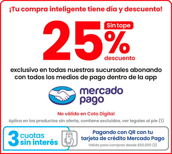 PARA MÁS INFORMACIÓN O LIMITACIONES APLICABLES, CONSULTE EN COTO.COM.AR/LEGALES SECCIÓN “DESCUENTOS VIERNES”.