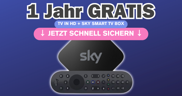 Exklusiver Deal: Sichert euch 1 Jahr Sky TV komplett kostenlos und spart euch die Gebühren für HD-Sender und Hardware.