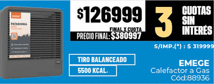 PROMOCIÓN VÁLIDA DEL 02 AL 31 DE MARZO DE 2026 O HASTA AGOTAR STOCK. VÁLIDA PARA LA COMPRA DE LOS PRODUCTOS SKU 85962 – AIRE SPLIT F/C 6300W PHILCO Y SKU 85930 – AIRE SPLIT F/C 3350W NOBLEX. LOS PRECIOS PUBLICADOS APLICAN PARA TODOS LOS CLIENTES. FINANCIACIÓN EN HASTA 12 (DOCE) CUOTAS SIN INTERÉS SOBRE EL PRECIO DE CONTADO. TASA NOMINAL ANUAL (TNA): 0,00%. TASA EFECTIVA ANUAL (TEA): 0,00%. COSTO FINANCIERO TOTAL EFECTIVO ANUAL (CFTEA): 0,00%. CFTEA + IVA: 0,00%. PROMOCIÓN 12 CUOTAS SIN INTERÉS EN EL PRECIO DE CONTADO, PARA COMPRAS REALIZADAS EN EL PAÍS. VÁLIDA PARA TODOS LOS DÍAS COMPRENDIDOS ENTRE EL 02/03/2026 Y EL 31/03/2026, PARA COMPRAS REALIZADAS CON TARJETA VISA, MASTERCARD Y AMERICAN EXPRESS.