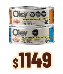 OKEY Atún Desmenuzado x 170 Gr. Cód: 11029-11030 |