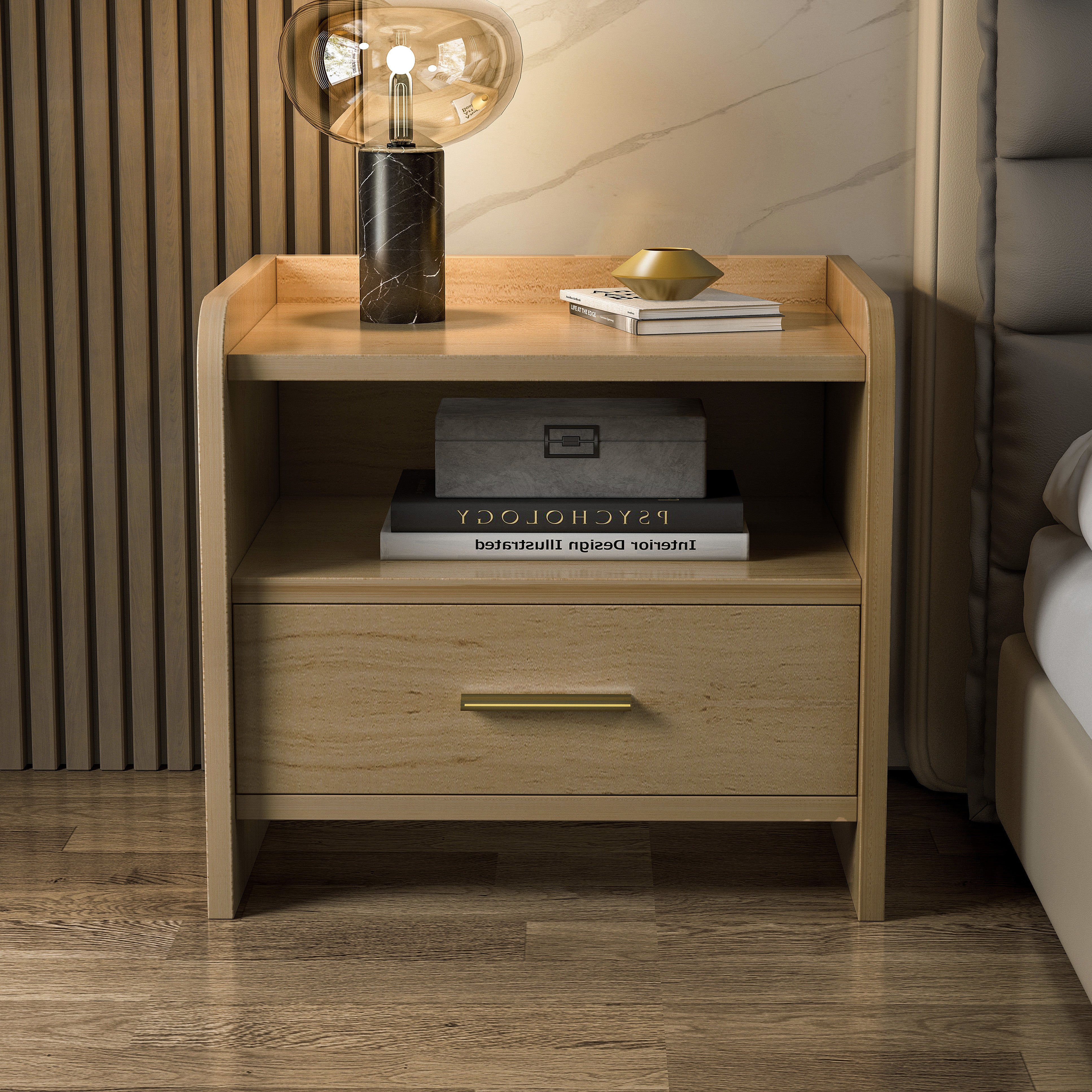 Serene Bedside Table Nightstand with Drawer (Oak)