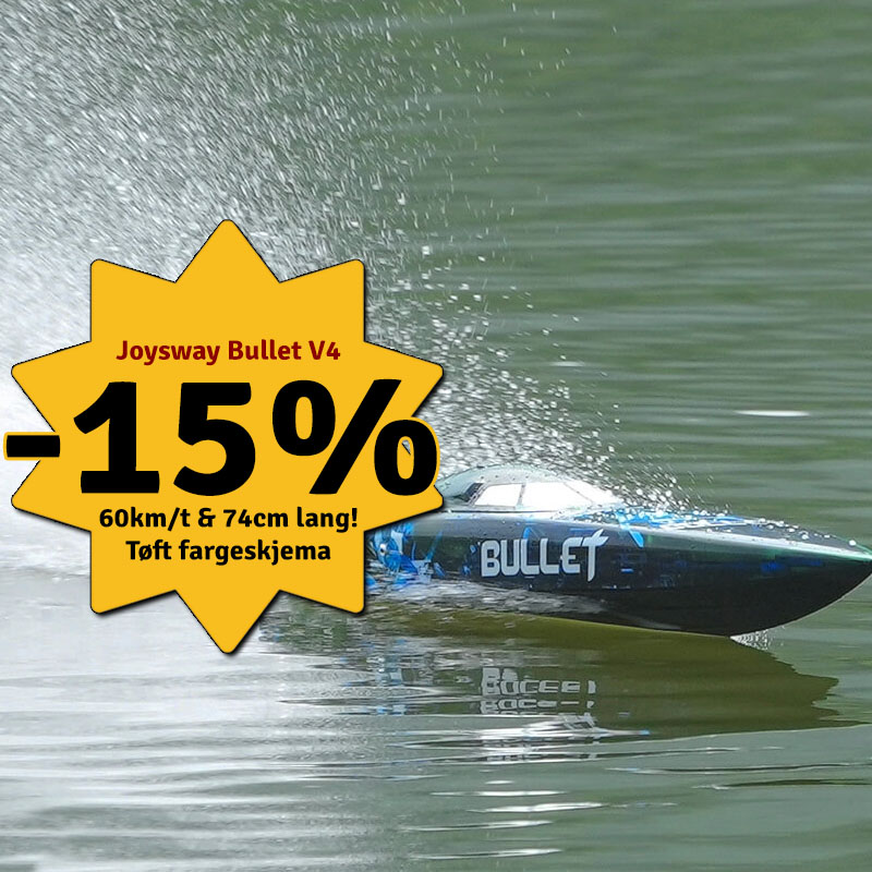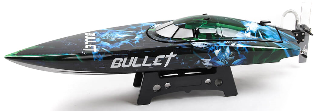 V4 versjonen av Bullet kommer med ett helt rått fargeskjem og her følger det også med oppladbare LiPo-batterier til båren! 3-blads metallpropell og oppgradert rorholder i metall med rescue plastikk. Bullet går i 60km/t+ oppgitt fra produsent, og er hele 74cm lang med en vekt på 1.14kg. Bullet beveger seg som en kule over vannflaten! |