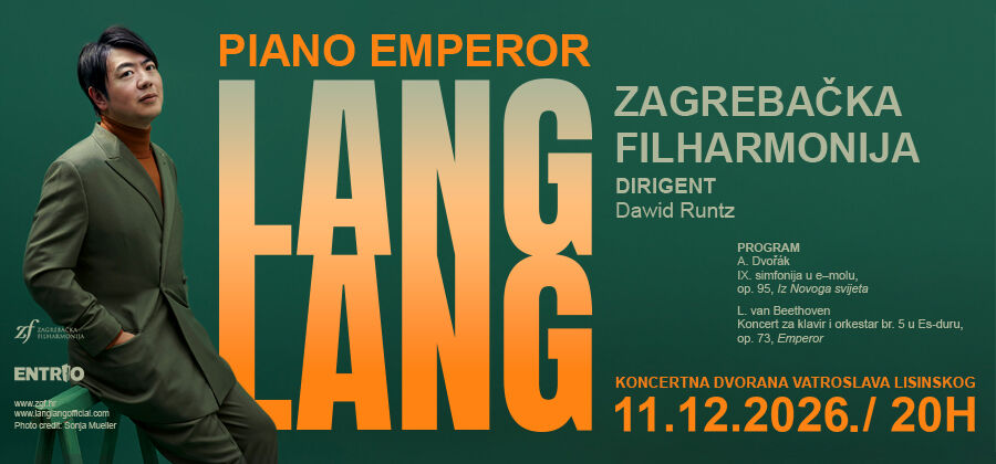 U pratnji Zagrebačke filharmonije pod ravnanjem maestra Dawida Runtza ćeš moći čuti Dvořákovu 9. simfoniju "Iz Novoga svijeta", a Lang Lang preuzima klavir za Beethovenov veličanstveni 5. koncert - legendarni "Emperor".