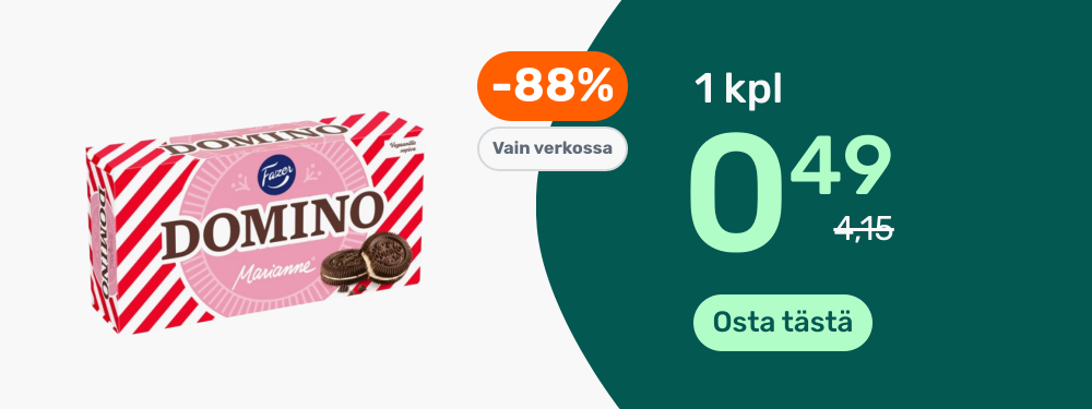 Hinnat ovat voimassa rajoitetun ajan ja tuotteita on saatavilla rajoitetusti. PidÀtÀmme oikeudet muutoksiin. Tuotteiden tilausmÀÀrÀÀ voi olla rajoitettu. Vertailuhintana kÀytetÀÀn suurten pÀivittÀistavarakauppojen normaalihintaa, jonka perusteella alennusprosentit on laskettu.