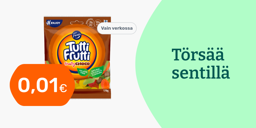 Hinnat ovat voimassa rajoitetun ajan ja tuotteita on saatavilla rajoitetusti. Pidätämme oikeudet muutoksiin. Tuotteiden tilausmäärää voi olla rajoitettu. Vertailuhintana käytetään suurten päivittäistavarakauppojen normaalihintaa, jonka perusteella alennusprosentit on laskettu.