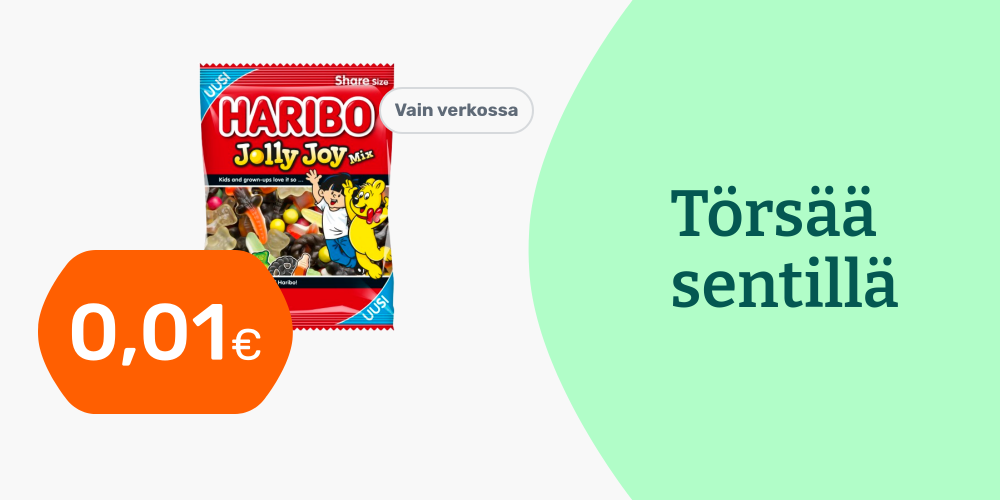 Hinnat ovat voimassa rajoitetun ajan ja tuotteita on saatavilla rajoitetusti. Pidätämme oikeudet muutoksiin. Tuotteiden tilausmäärää voi olla rajoitettu. Vertailuhintana käytetään suurten päivittäistavarakauppojen normaalihintaa, jonka perusteella alennusprosentit on laskettu.