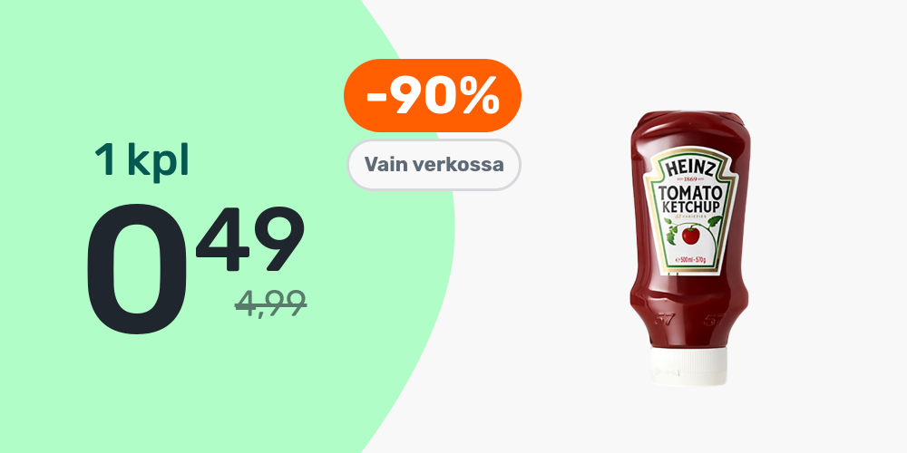 Hinnat ovat voimassa rajoitetun ajan ja tuotteita on saatavilla rajoitetusti. Pidätämme oikeudet muutoksiin. Tuotteiden tilausmäärää voi olla rajoitettu. Vertailuhintana käytetään suurten päivittäistavarakauppojen normaalihintaa, jonka perusteella alennusprosentit on laskettu.
