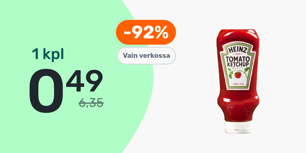 Hinnat ovat voimassa rajoitetun ajan ja tuotteita on saatavilla rajoitetusti. Pidätämme oikeudet muutoksiin. Tuotteiden tilausmäärää voi olla rajoitettu. Vertailuhintana käytetään suurten päivittäistavarakauppojen normaalihintaa, jonka perusteella alennusprosentit on laskettu.
