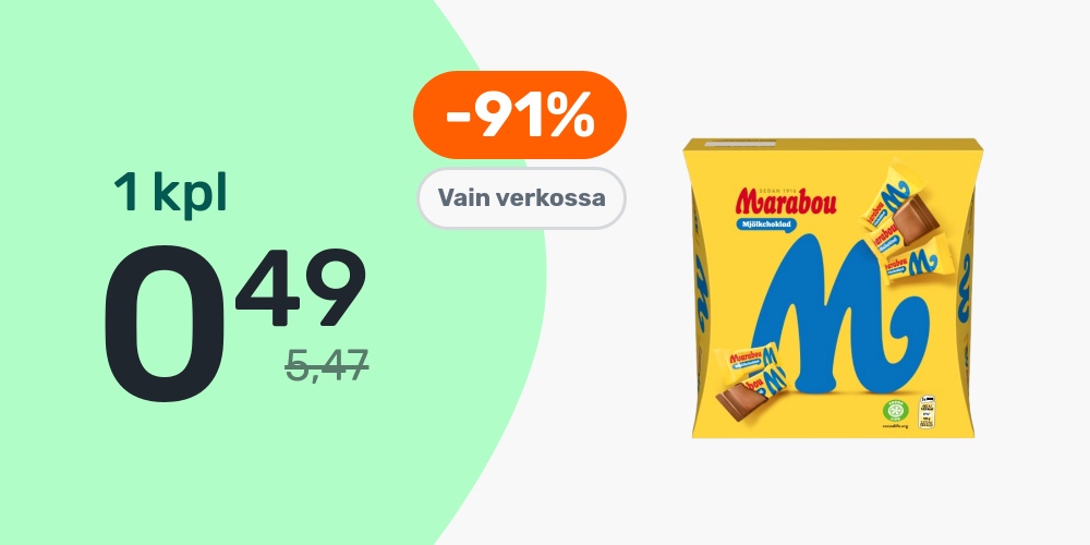 Hinnat ovat voimassa rajoitetun ajan ja tuotteita on saatavilla rajoitetusti. PidÀtÀmme oikeudet muutoksiin. Tuotteiden tilausmÀÀrÀÀ voi olla rajoitettu. Vertailuhintana kÀytetÀÀn suurten pÀivittÀistavarakauppojen normaalihintaa, jonka perusteella alennusprosentit on laskettu.