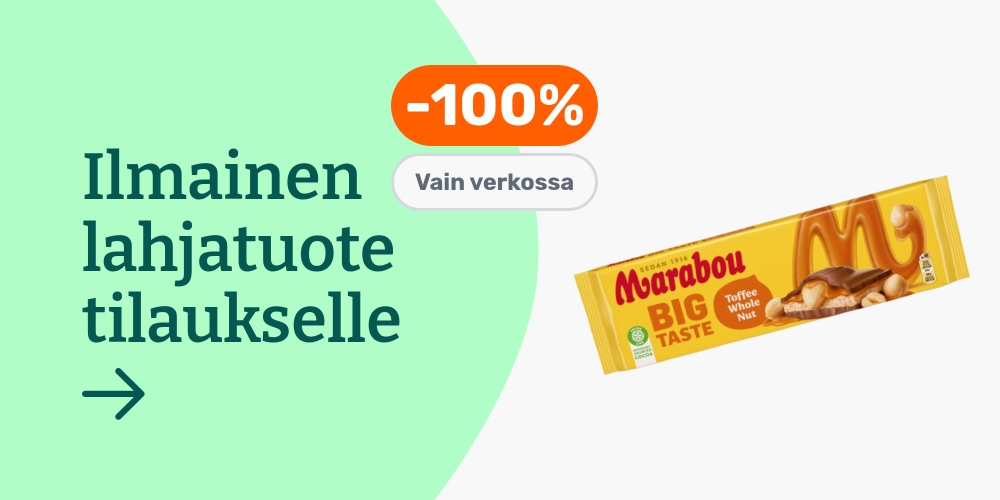 Hinnat ovat voimassa rajoitetun ajan ja tuotteita on saatavilla rajoitetusti. Pidätämme oikeudet muutoksiin. Tuotteiden tilausmäärää voi olla rajoitettu. Vertailuhintana käytetään suurten päivittäistavarakauppojen normaalihintaa, jonka perusteella alennusprosentit on laskettu.