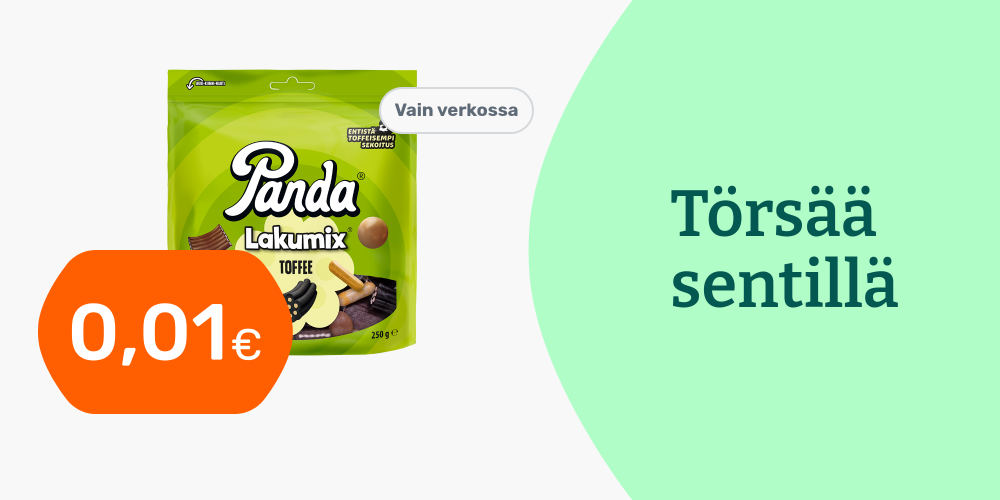 Hinnat ovat voimassa rajoitetun ajan ja tuotteita on saatavilla rajoitetusti. Pidätämme oikeudet muutoksiin. Tuotteiden tilausmäärää voi olla rajoitettu. Vertailuhintana käytetään suurten päivittäistavarakauppojen normaalihintaa, jonka perusteella alennusprosentit on laskettu.
