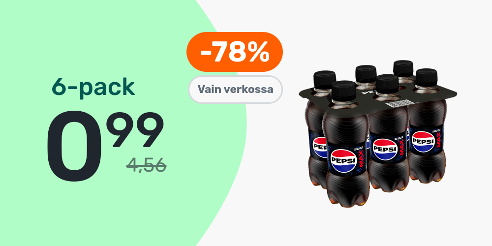 Hinnat ovat voimassa rajoitetun ajan ja tuotteita on saatavilla rajoitetusti. Pidätämme oikeudet muutoksiin. Tuotteiden tilausmäärää voi olla rajoitettu. Vertailuhintana käytetään suurten päivittäistavarakauppojen normaalihintaa, jonka perusteella alennusprosentit on laskettu.