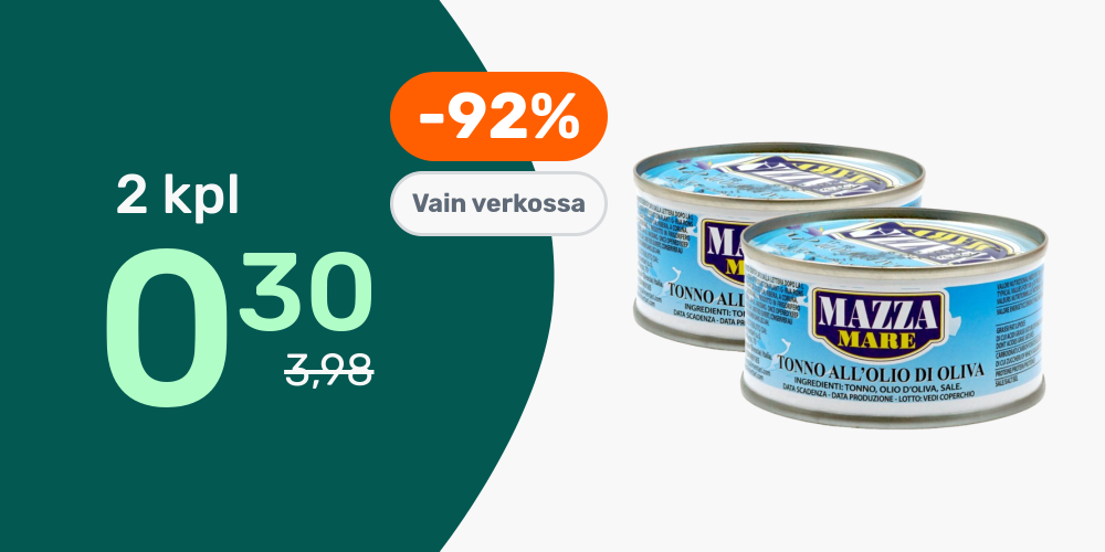 Hinnat ovat voimassa rajoitetun ajan ja tuotteita on saatavilla rajoitetusti. PidÀtÀmme oikeudet muutoksiin. Tuotteiden tilausmÀÀrÀÀ voi olla rajoitettu. Vertailuhintana kÀytetÀÀn suurten pÀivittÀistavarakauppojen normaalihintaa, jonka perusteella alennusprosentit on laskettu.