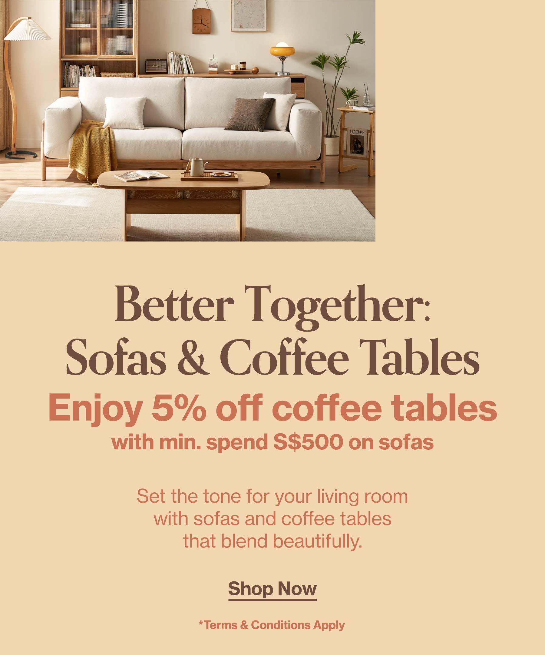☕ 5% off coffee tables with sofa purchase