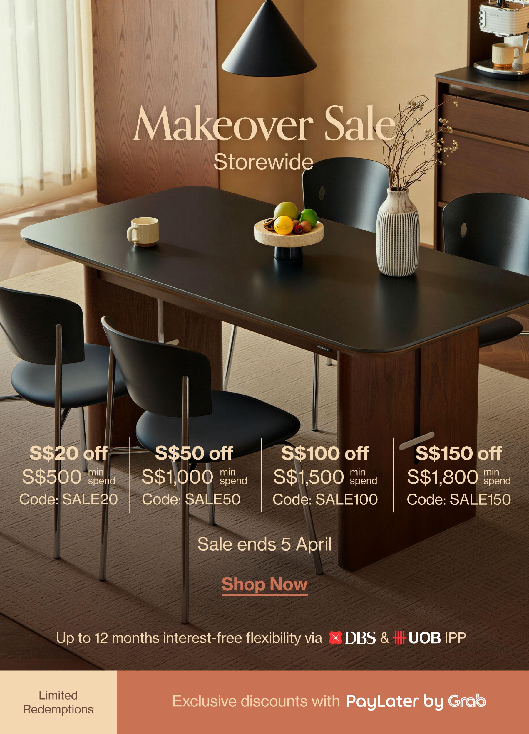 🛋️ Makeover Sale: Up to S$150 off