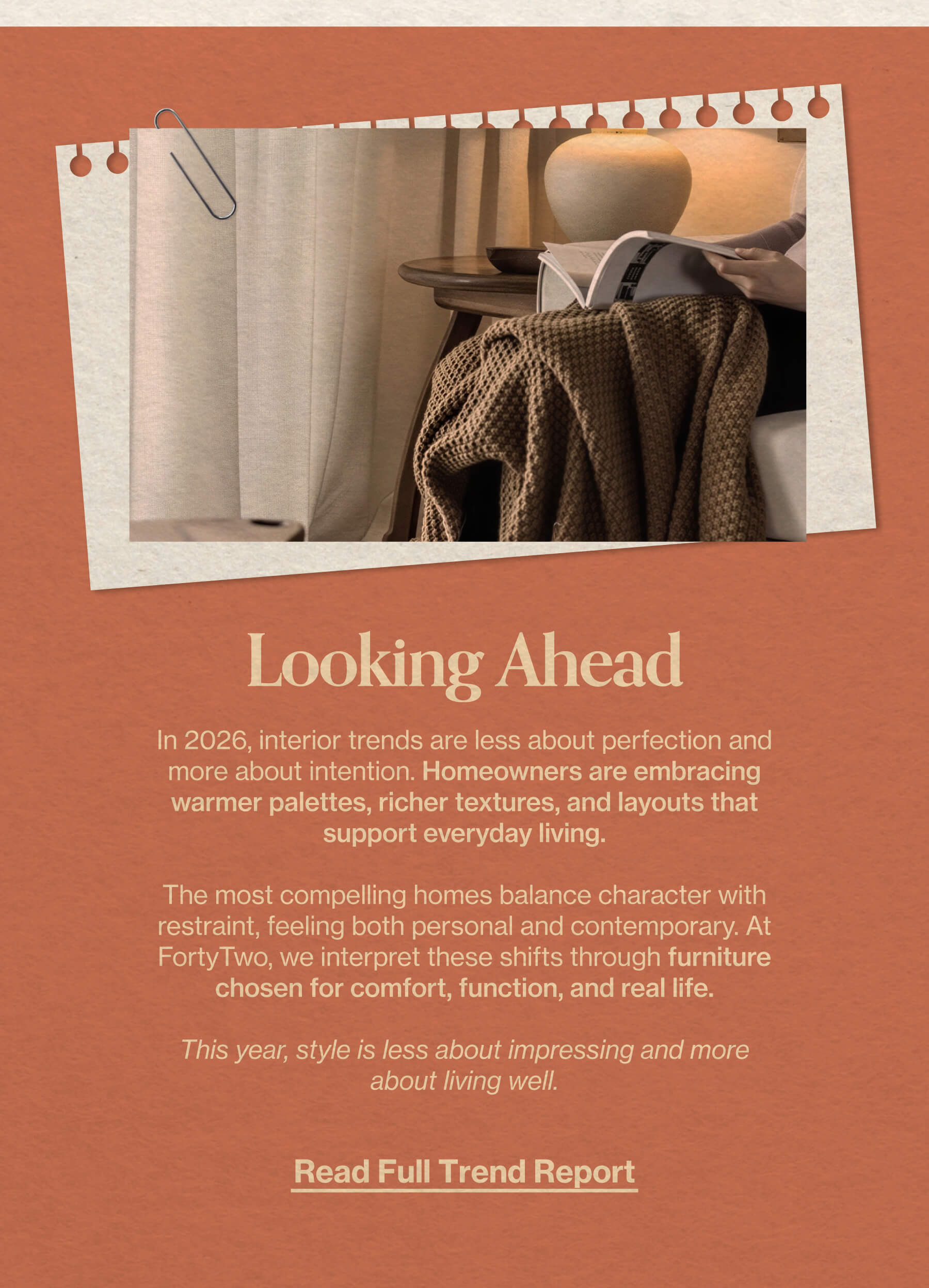 FortyTwo’s take on the colours, materials, and moods shaping homes now.