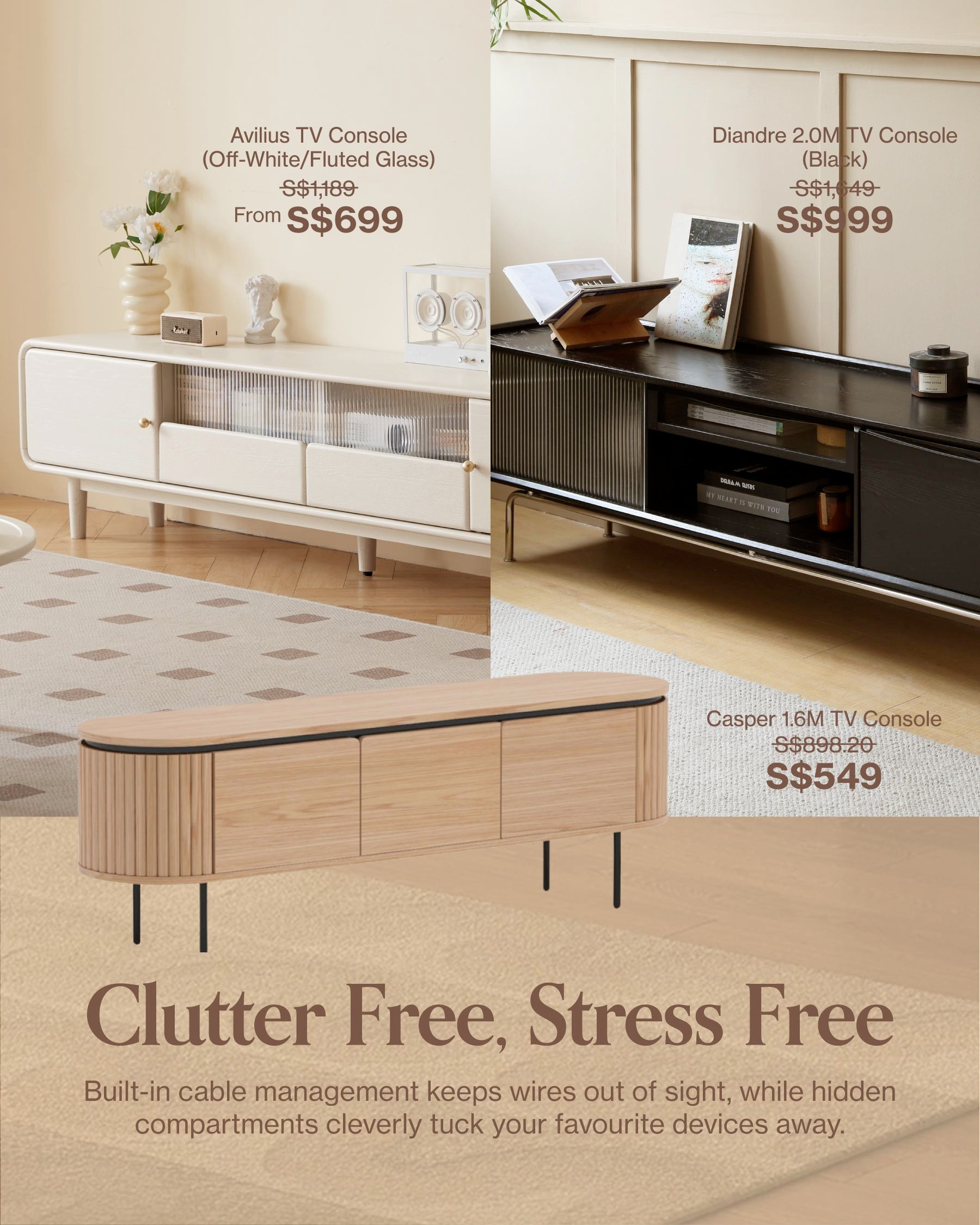 📺 Versatile TV consoles for a calmer, clutter-free space