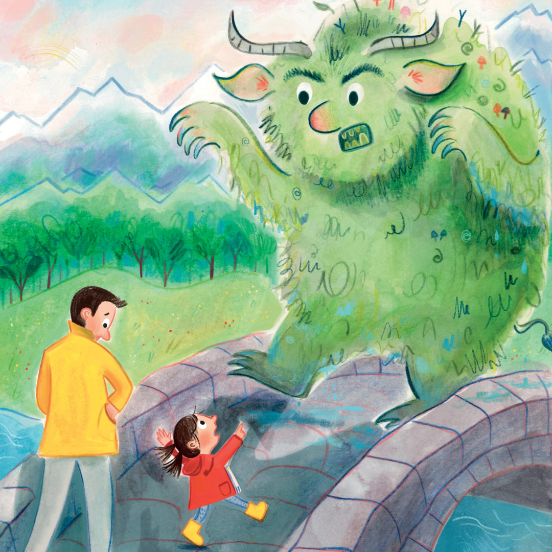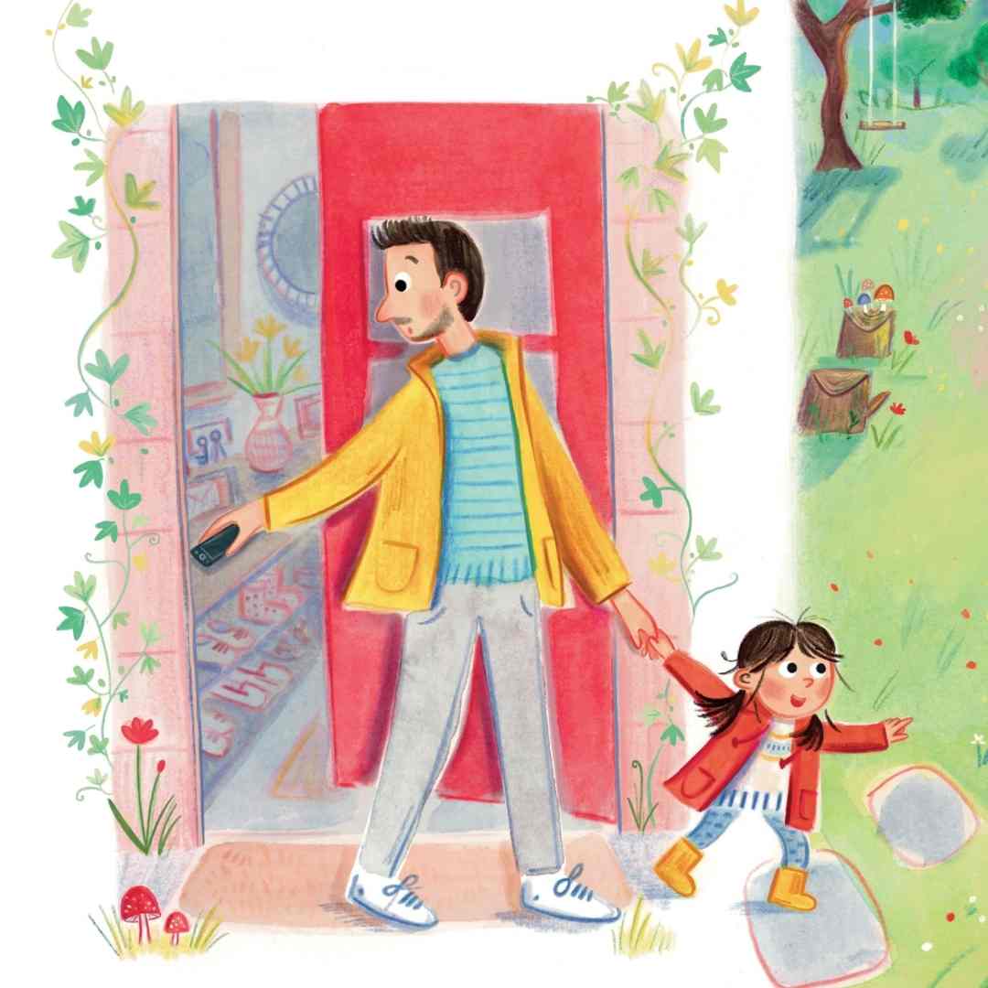 | En far og datter går tur. For datteren er det et fantasifuldt eventyr, og hun ser drager, trolde og mange andre spændende væsner på deres vej. Men faren har travlt med sin mobil og ser ingenting. Pludselig står der en kæmpestor drage foran dem, men får det faren til at få øje på al magien omkring dem? |