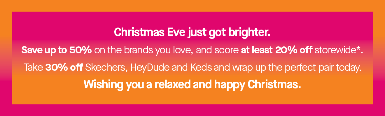 *Big Brand Sale: Offer valid until 11:59pm NZT Monday 5th January 2026. Up to 50% off storewide - prices as marked. 30% off Skechers, Keds, HeyDude + Women's Hush Puppies Sandals. All Life & Sole $49.99. All Pulp, Sakura and Sfida $59.99. All Fun Foam $19.99. While stocks last. Stock may vary between stores. Number One Shoes + Hannahs reserves the right to amend, extend or discontinue this promotion at any time.