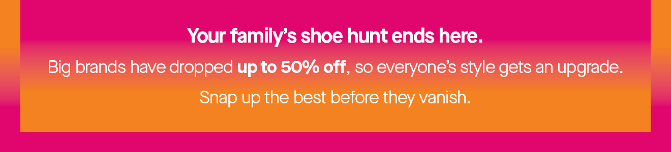 *Big Brand Sale: Offer valid until 11:59pm NZT Monday 5th January 2026. Up to 50% off storewide - prices as marked. 30% off Skechers, Keds, HeyDude + Women's Hush Puppies Sandals. All Life & Sole $49.99. All Pulp, Sakura and Sfida $59.99. All Fun Foam $19.99. While stocks last. Stock may vary between stores. Number One Shoes + Hannahs reserves the right to amend, extend or discontinue this promotion at any time.
