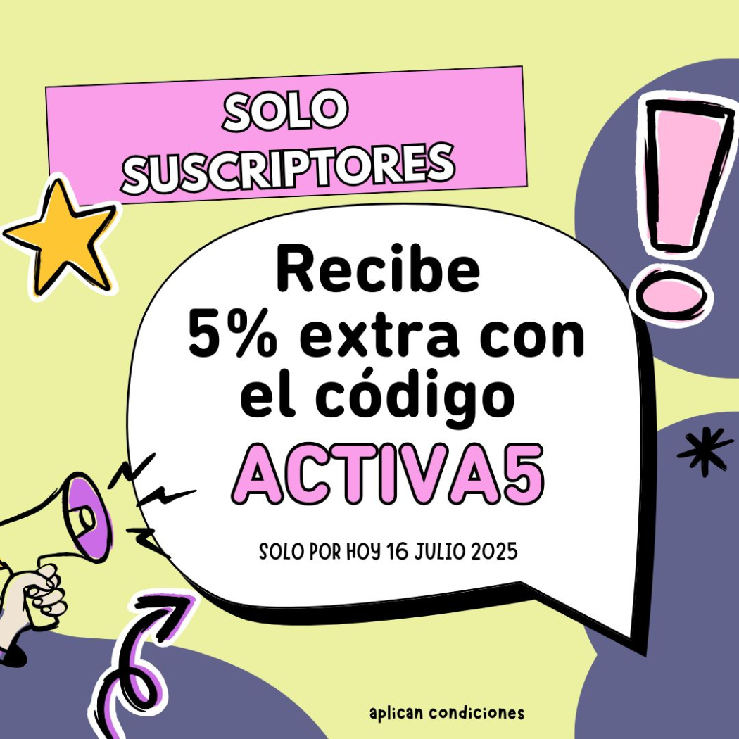 El código ACTIVA5 5% OFF adicional aplica solo el día 16 julio 2025. Debes usar el código ACTIVA5 en el carrito de compras para tener el descuento adicional.