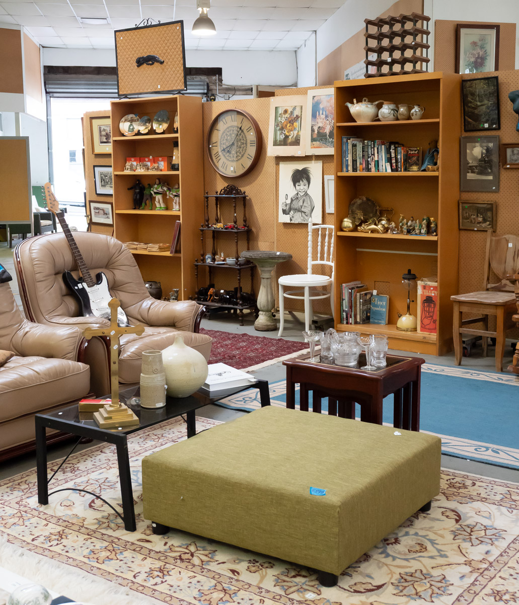Lounge suites include a taupe leather and hardwood 3 piece, a La-Z-Boy green leather 3 piece and a compact bergere 3- piece (with some cat scratches) and we have a solid pine wall unit, 10-drawer mirror-back dresser, vintage and contemporary dining and occasional chairs, a wooden rocking chair, solid wood sideboards, dining suites, bedroom furniture, hall tables, filing cabinets, locker units and white ware.