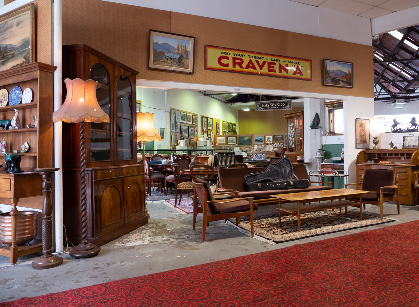 Indian dowry chests, carved Chinese hardwood chests, carved-top Chinese tables and various glazed display and china cabinets, decorative table lamps, anglepoise and standard lamps, clocks, barometers, light shades and fittings, Persian style floor rugs, framed original paintings and prints… There are too many great finds to list here, so please have a look at our website where you can find photos and descriptions of every lot, create a wish list and place your bids, and if you’re in town, come in for a browse at 5 Carroll St in Dunedin.
