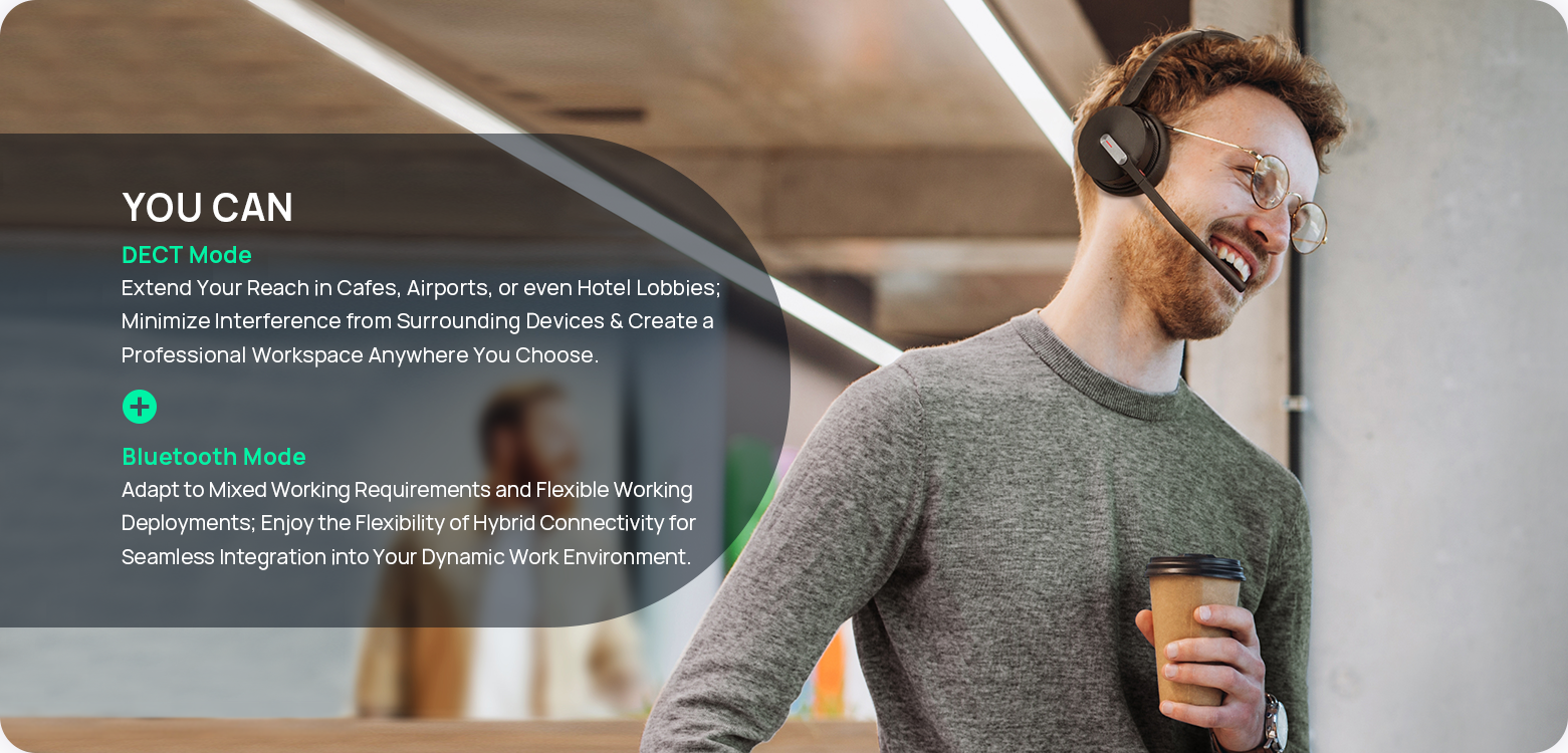 Yealink headsets give you the flexibility to work your way with dual wireless connectivity. DECT Mode delivers long-range, interference-free performance—perfect for busy offices where crystal-clear calls and reliable coverage matter most. Move freely around your workspace while staying securely connected. Switch to Bluetooth Mode for seamless pairing with laptops, smartphones, and tablets. Ideal for hybrid and mobile professionals, it lets you take calls, join meetings, and manage audio on the go without missing a beat. Two modes, one headset—designed to adapt effortlessly to how and where you work.