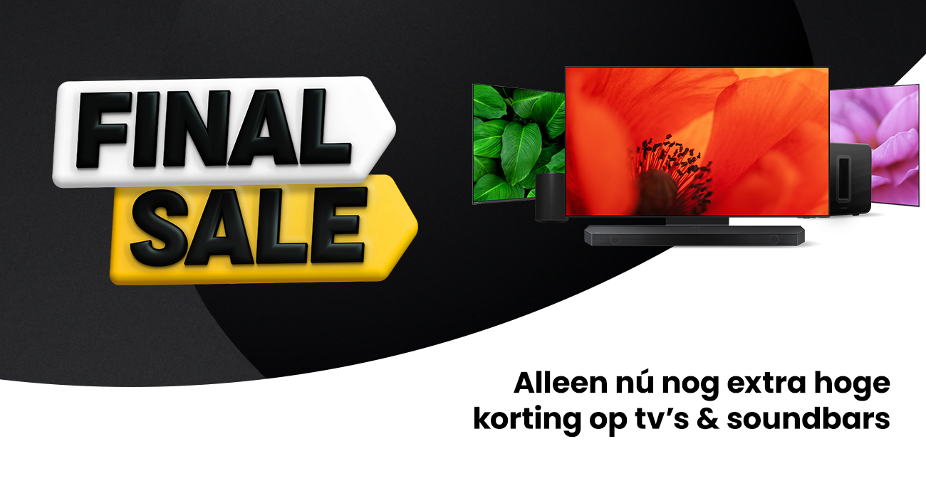 Ook in onze 18 XXL-winkels is het nu Final Sale. Kom deze week langs, vergelijk alle modellen en laat je adviseren door onze specialisten. Want er is voor jou maar één tv de beste!