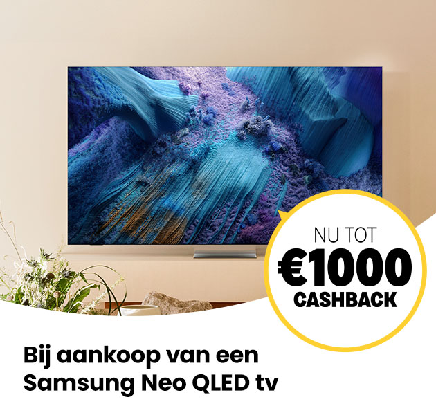 Op heel veel nieuwe Samsung tv's en soundbars ontvang je tijdelijk tot wel €1000 cashback. En je krijgt ook nog korting via LiveChat, het kortingsformulier en in onze winkels. OLED, (Neo) QLED en The Frame, allemaal doen ze mee met deze actie. Scoor snel jouw deal! |