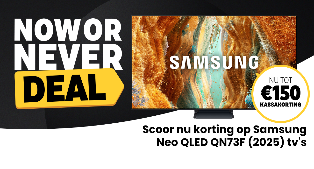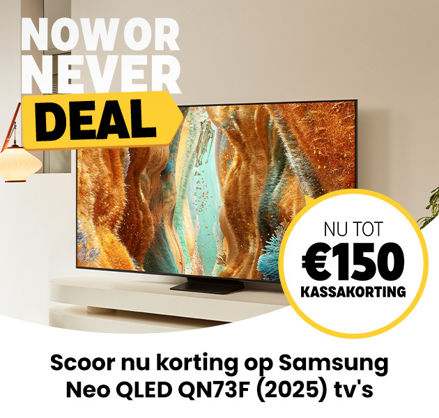 NOW OR NEVER: Alléén dit weekend ontvang je tot €150 kassakorting op de nieuwe Samsung Neo QLED QN73F. Met hoge helderheid, levendige kleuren en beeldverversing tot 144 Hz is de QN73F een fantastische all-rounder. De kassakorting wordt automatisch verrekend in je winkelwagen. |