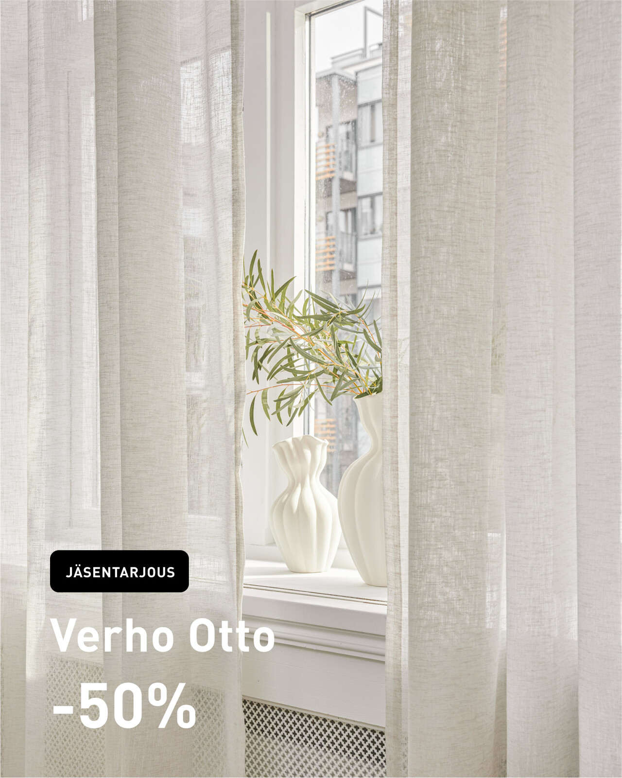 Otto on yksivärinen polyesteriverho, jonka kevyt materiaali muistuttaa pellavaa. Materiaali on pehmeä ja sen pinta on luonnollinen, mikä luo huoneeseen rennon ja kodikkaan tunnelman.