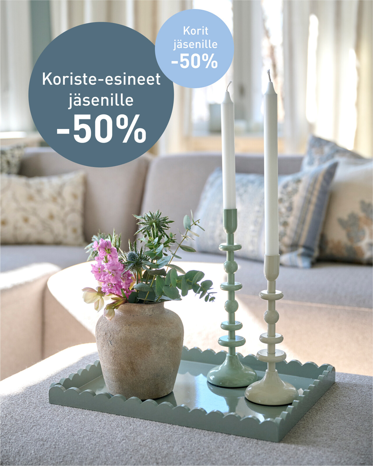 Kynttilät, paperiservetit & tuoksukynttilät jäsenille -50%