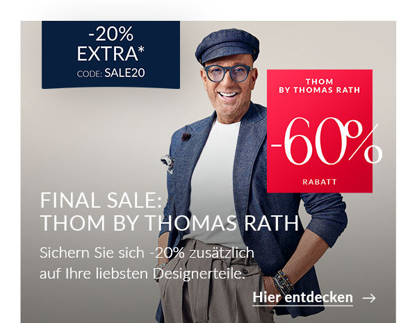 sichern Sie sich Ihre Lieblingslooks, bevor Sie vergriffen sind. Die aktuellen Kollektionen unserer Top-Marken, mit allen It-Pieces und Highlights, sind jetzt im Final Sale. Nutzen Sie Ihren -20%* extra Gutschein mit dem Code: SALE20 | | | |