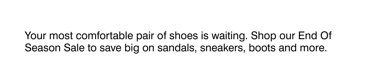 End of season styles $99 and below. Prices as marked. Offer can be redeemed in store and online. Not to be used in conjunction with any other offer. While stock lasts.