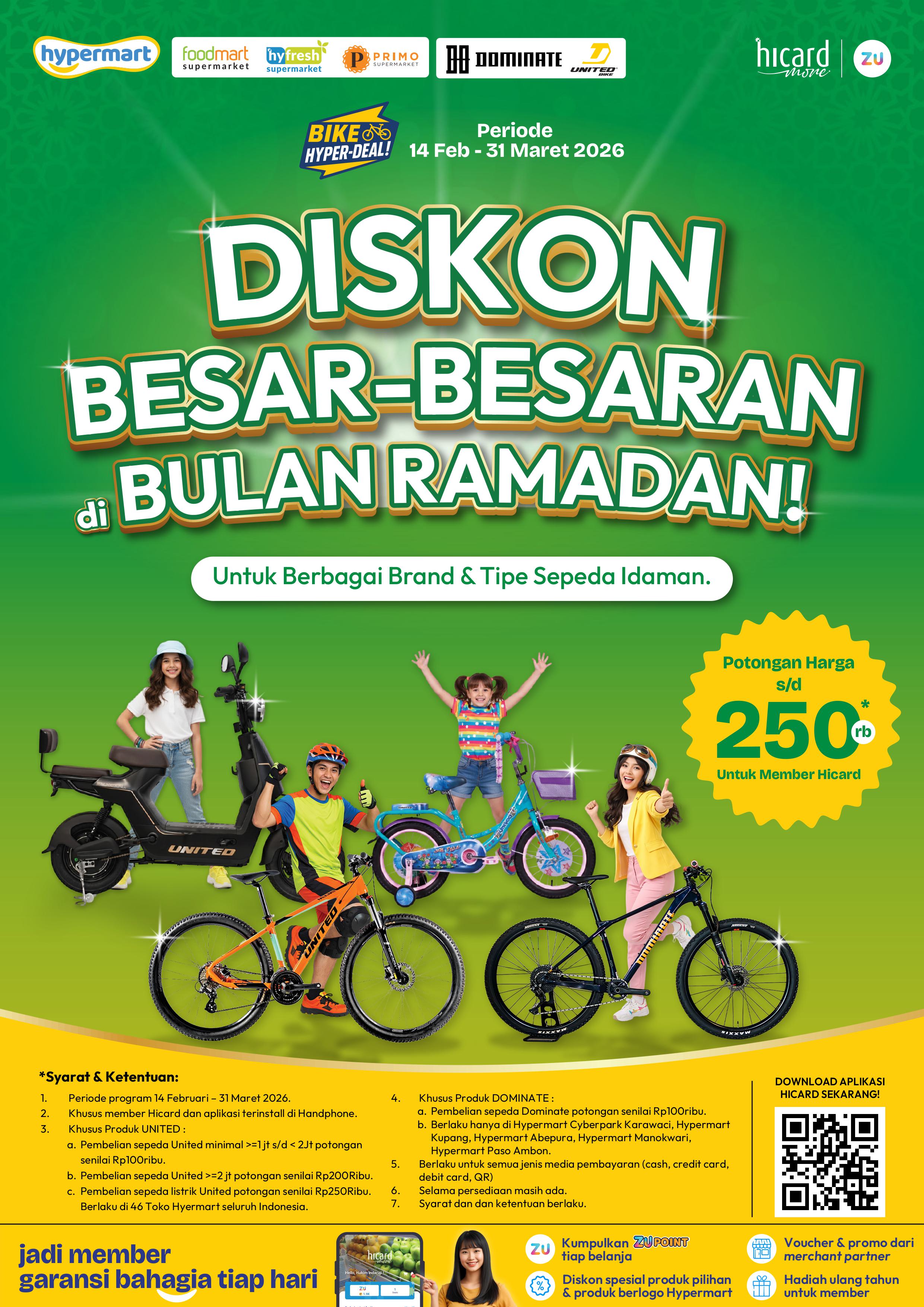 Nikmati potongan spesial untuk sepeda United & Dominate, khusus member Hicard ✨ 📅 Periode Promo: 14 Feb – 31 Mar 2026 🚴 Promo Sepeda UNITED