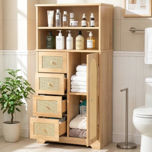 Rattan 4-Drawer Bathroom Floor Cabinet