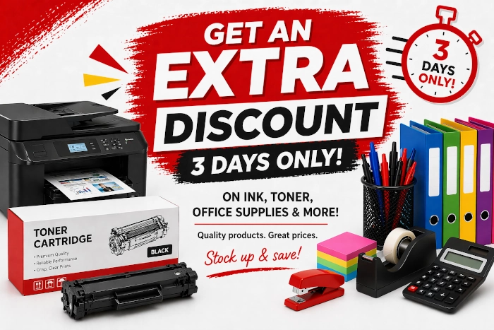 Whether you’re running low on ink and toner, need to restock the stationery cabinet, or finally want to pull the trigger on those tech upgrades, now is the time to strike. This site-wide discount stacks on top of our already competitive prices, making it the perfect window to maximise your savings. |